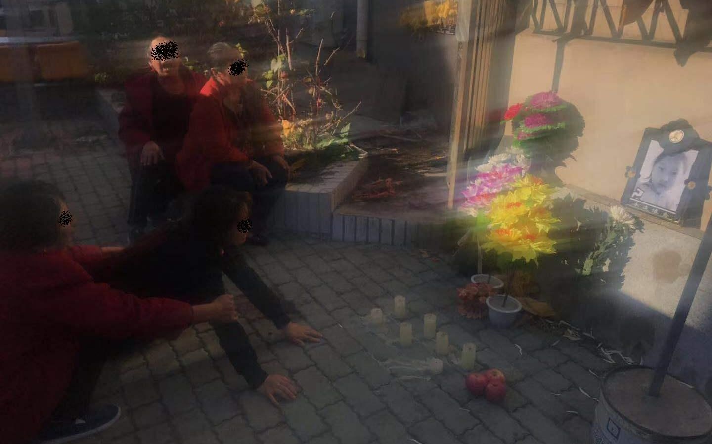 嫌疑人蔡某某的家门外,小琪的家属摆上了蜡烛与鲜花祭奠小琪。 新京报记者 王昱倩 摄
