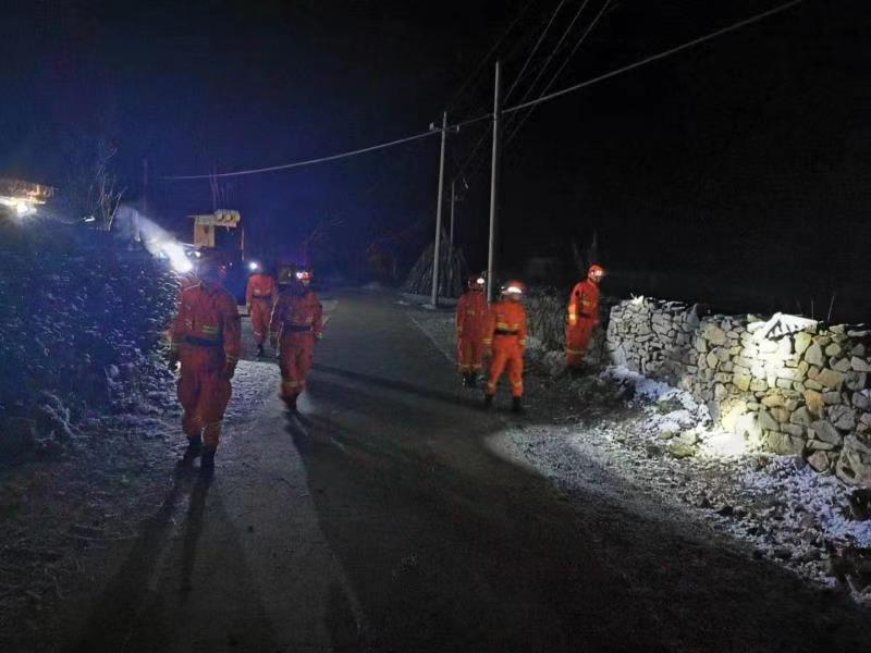 3时10分,据甘肃省应急厅商请,甘肃省森林消防总队陇南支队合作大队出动20名指战员赶往震中地区,5时20分到达震中较近的拉尔代村。经勘察,该村14户57名居民在屋外烤火避险,供水、供电、通信正常,房屋有开裂情况,无倒塌及人员伤亡。目前,救援队伍一组安抚群众,另一组巡察灾情。甘肃森林消防总队前指及所属特种救援大队200人已做好随时出动准备。