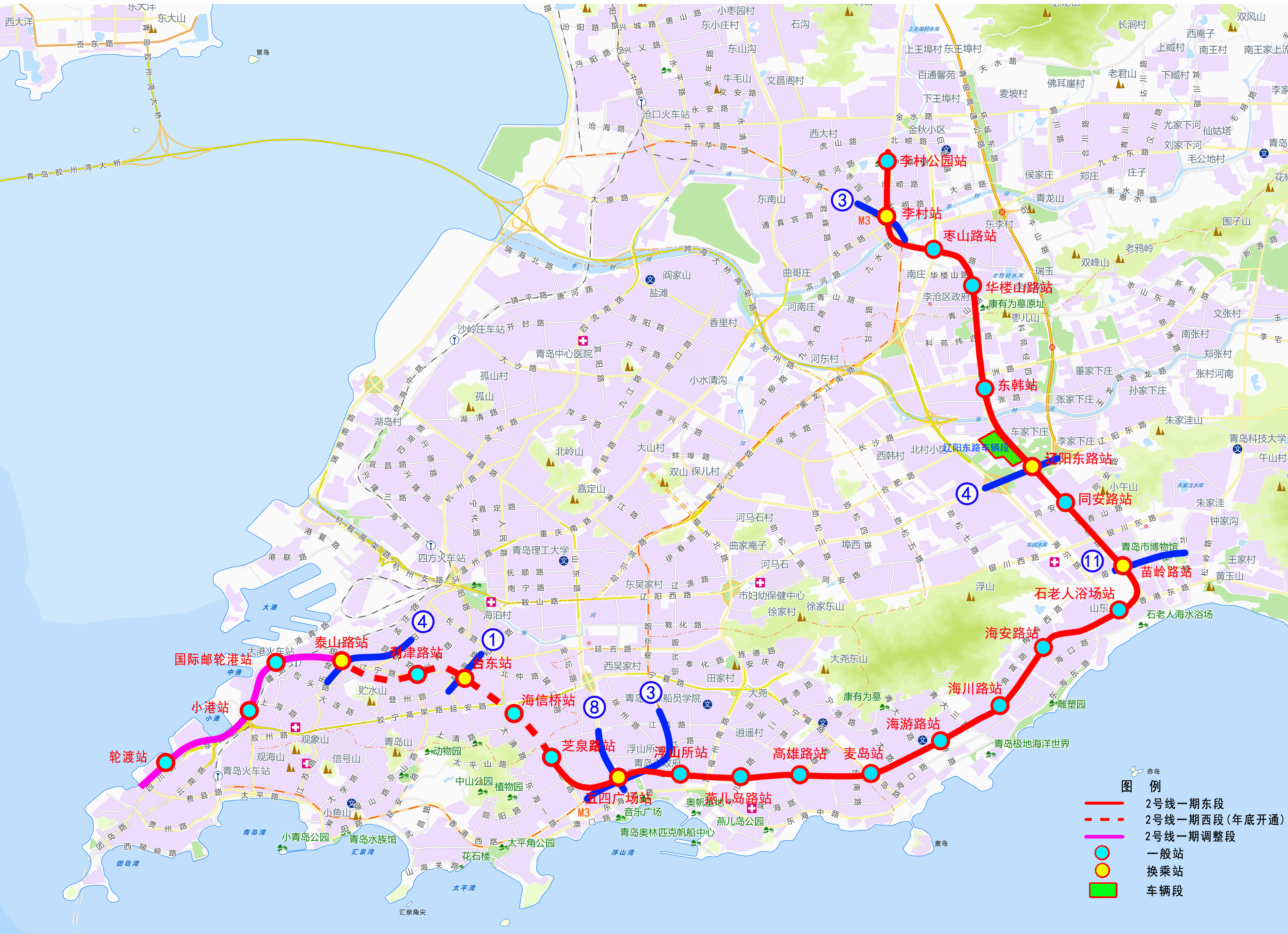青岛地铁2号线一期线路图