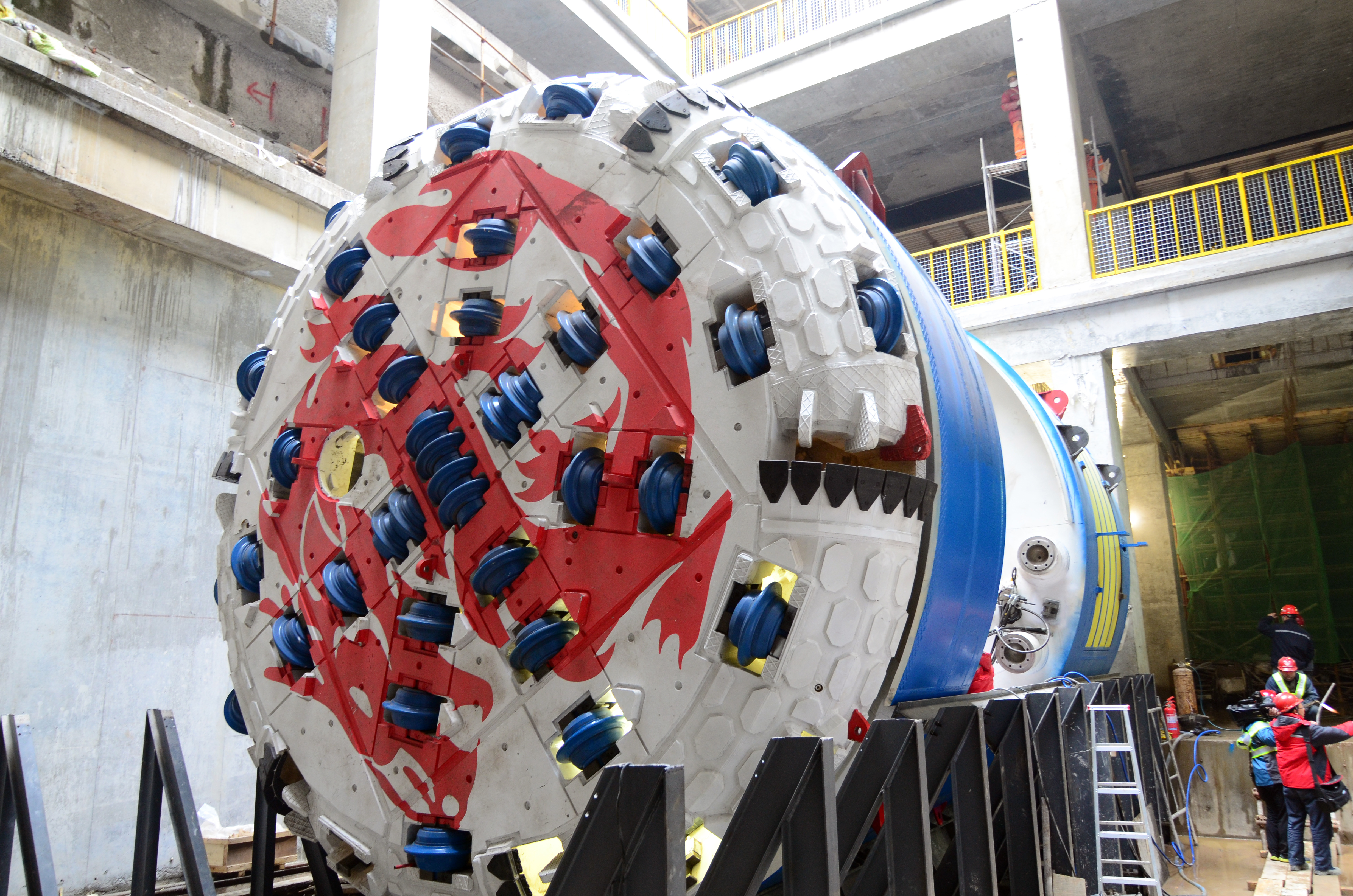 形如“小火车”般的“大家伙”,学名为“紧凑型双护盾(DSUC)TBM”。不过,见过它真容的青岛市民,为它取了“穿山甲”、“钻地龙”等别名,“别名更能形象描述它的功能,不论什么岩石,遇到它都会‘服软’,掘进速度是常规钻爆法的3到5倍”,安振超说,这是青岛地铁集团联合中船重工集团“量体裁衣”,针对青岛独特的地质条件研发的一台隧道掘进机,并以此为基础形成了设备制造、土建设计、施工、应急管理等的成套技术,“2号线在国内地铁领域首次成功应用该技术,小试牛刀之后,如今这套技术在4号线等各条在建线路上大显身手,青岛地铁应对复杂地质状况、加快施工进度的信心更足了”。