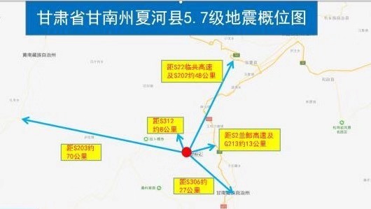 夏河县5.7级地震,震中范围内国省干线运行正常,暂未发现路网阻断受损情况。