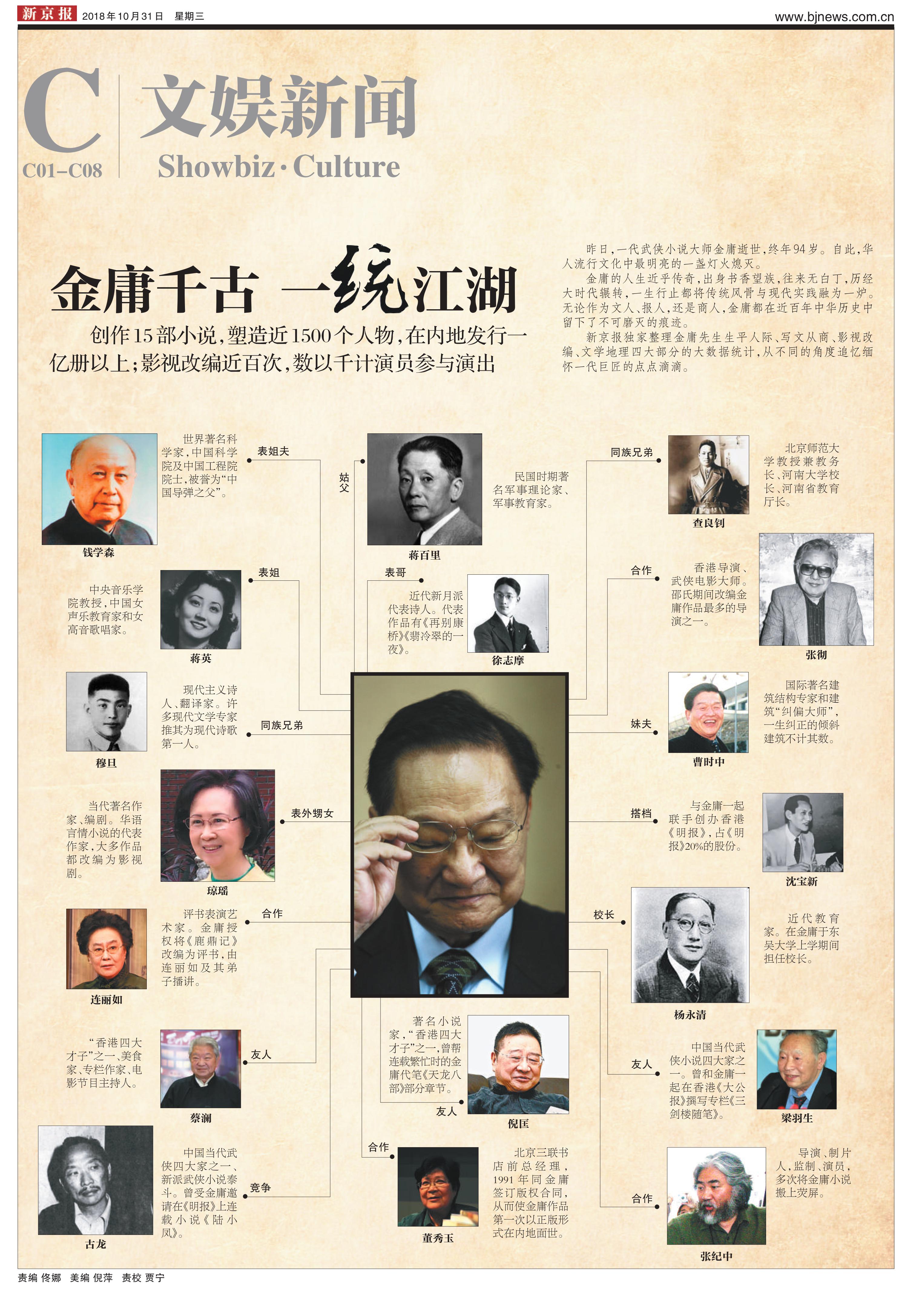 2018 年10 月31 日,新京报的金庸逝世专题封面。
