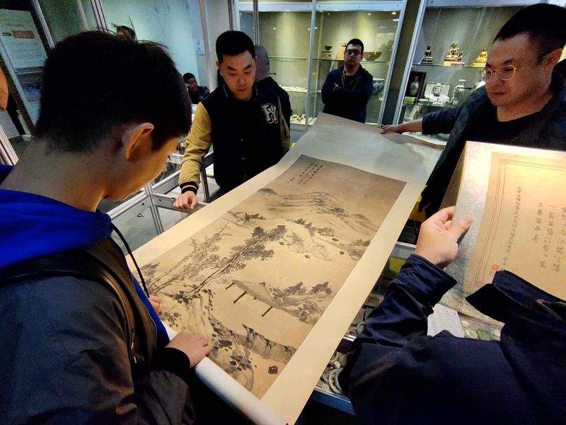 文物爱好者观看苏州文物公司的一幅古画。