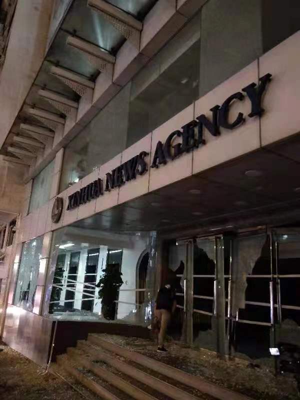 新华社香港特区分社被破坏现场。