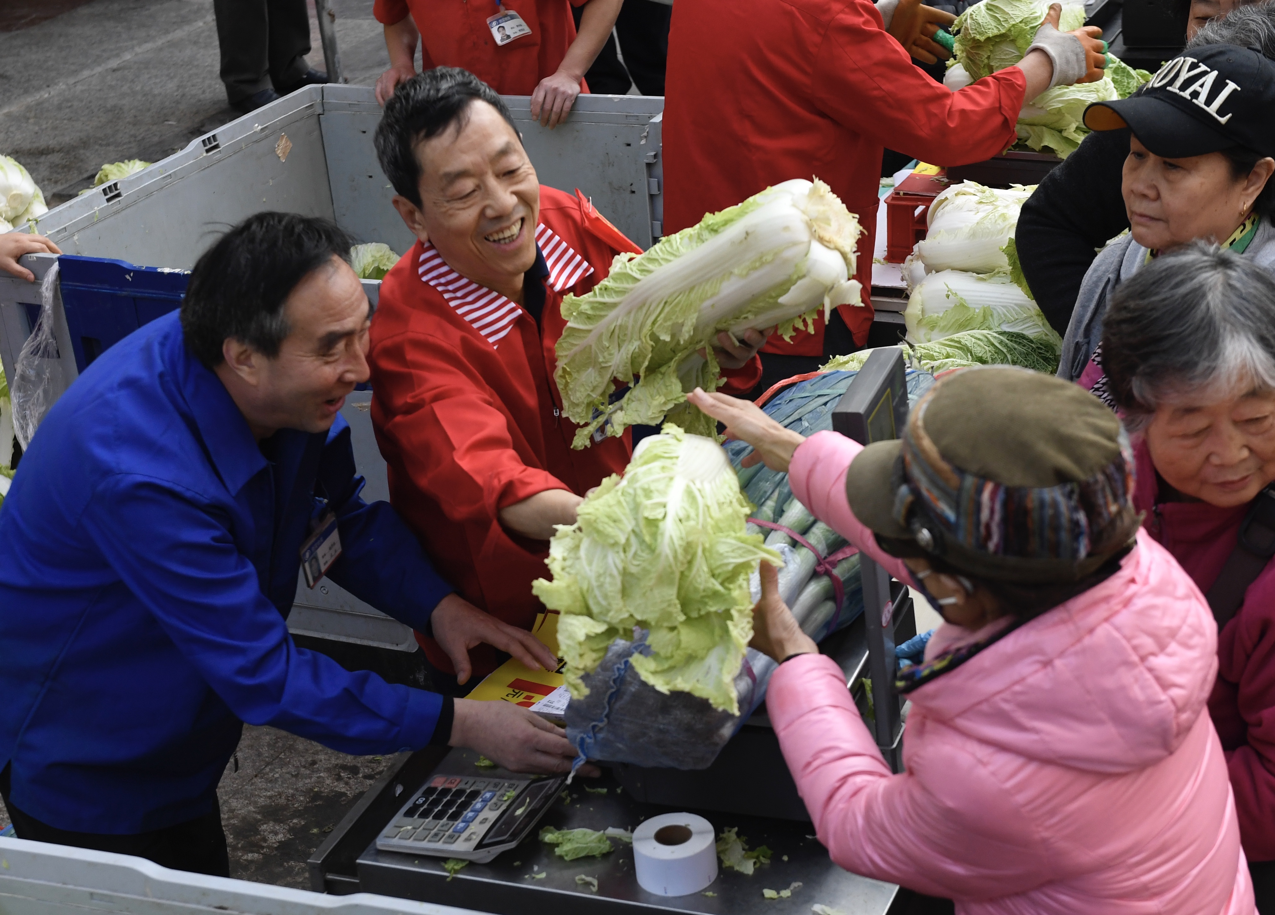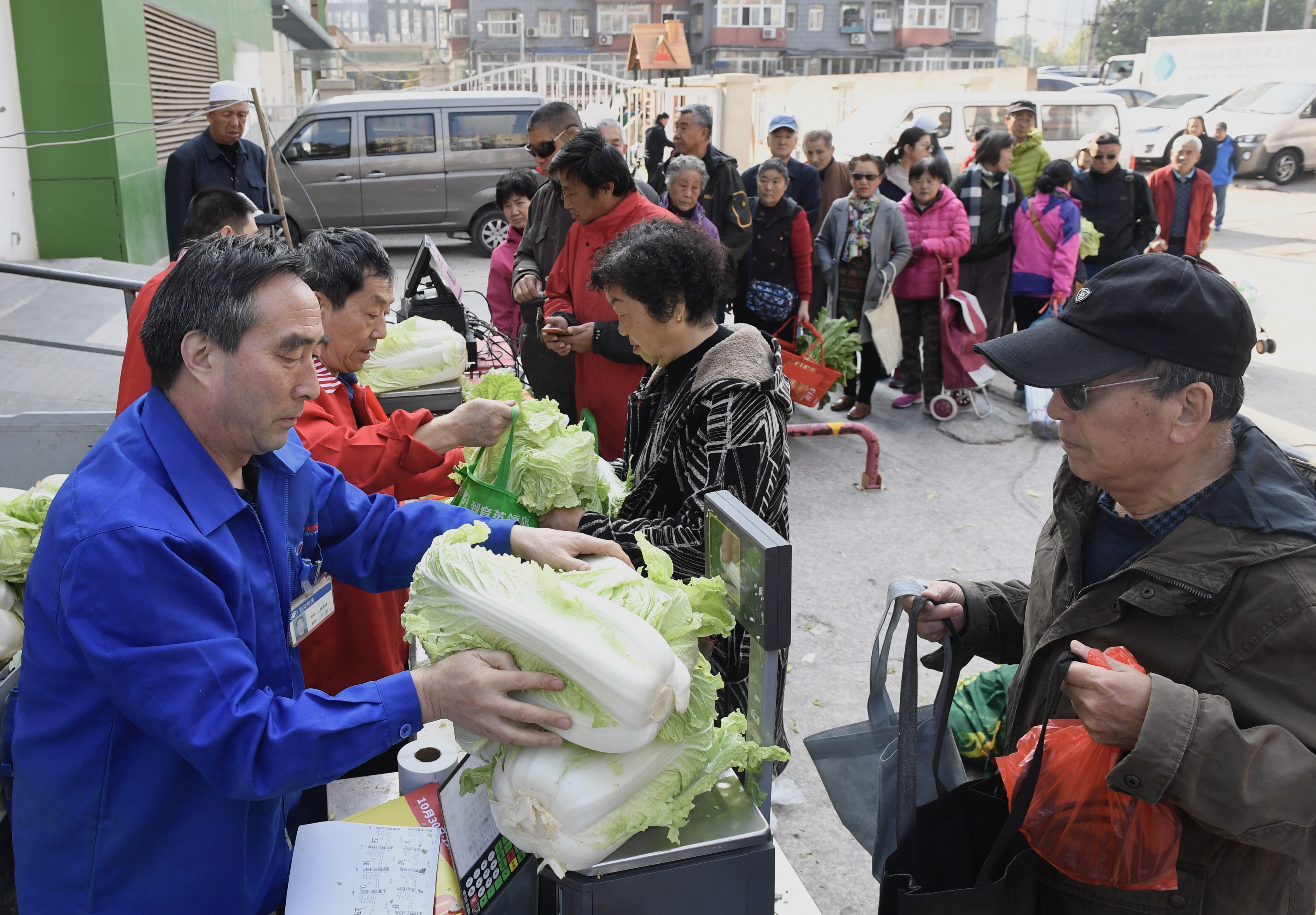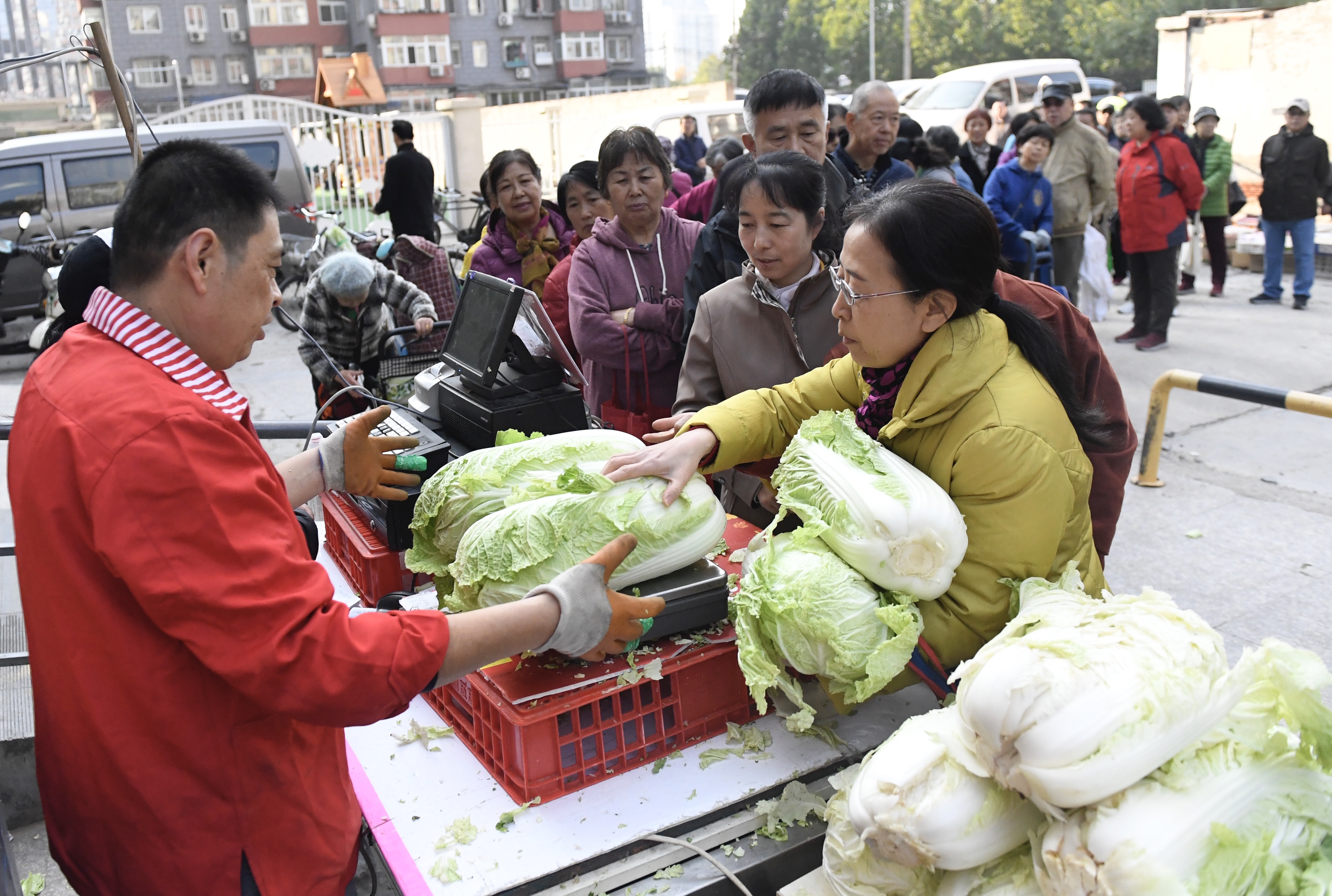 “您这一包白菜50斤,9块5毛钱。”“得嘞!”市民高大爷交过钱,转身把白菜码进了带来的小推车里。高大爷说,以前住平房,每次买大白菜,都是好几百斤的买,“假如说家里5口人,那得至少买三五百斤。以前冬储大白菜还负责送上门,现在住楼房,买多了也没地儿放,随吃随买。”