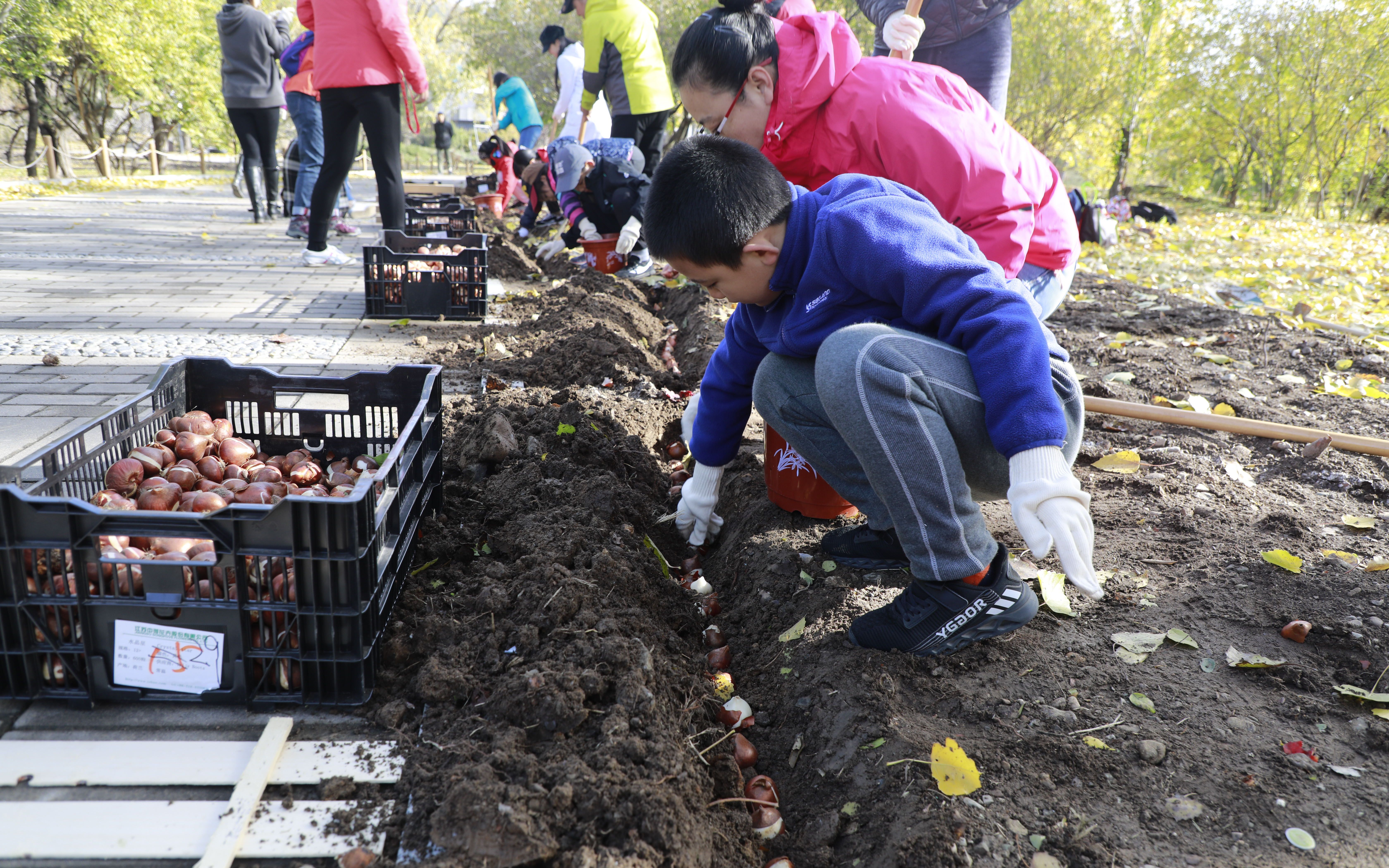 11月10日,北京植物园开展“播种春天”郁金香种植活动现场。北京植物园供图