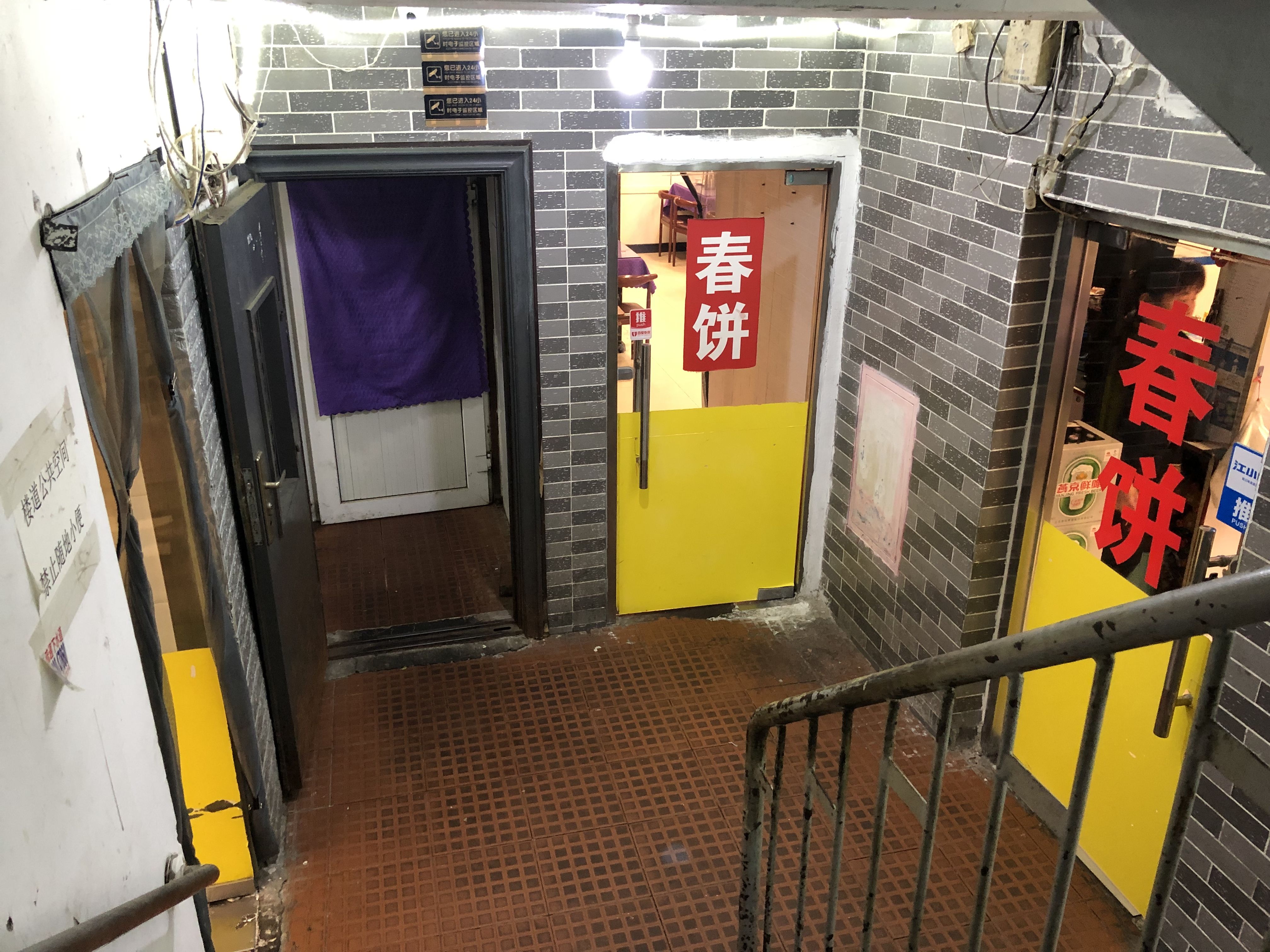 敞开的单元门不时有抽油烟机轰轰作响的声音传出,楼道的地面上油迹斑斑,除了吃饭的顾客,楼上的住户不时从门内外进进出出,大家都无一例外迈开大步踮着脚尖,尽量避开地面的油渍一路小跑上楼。