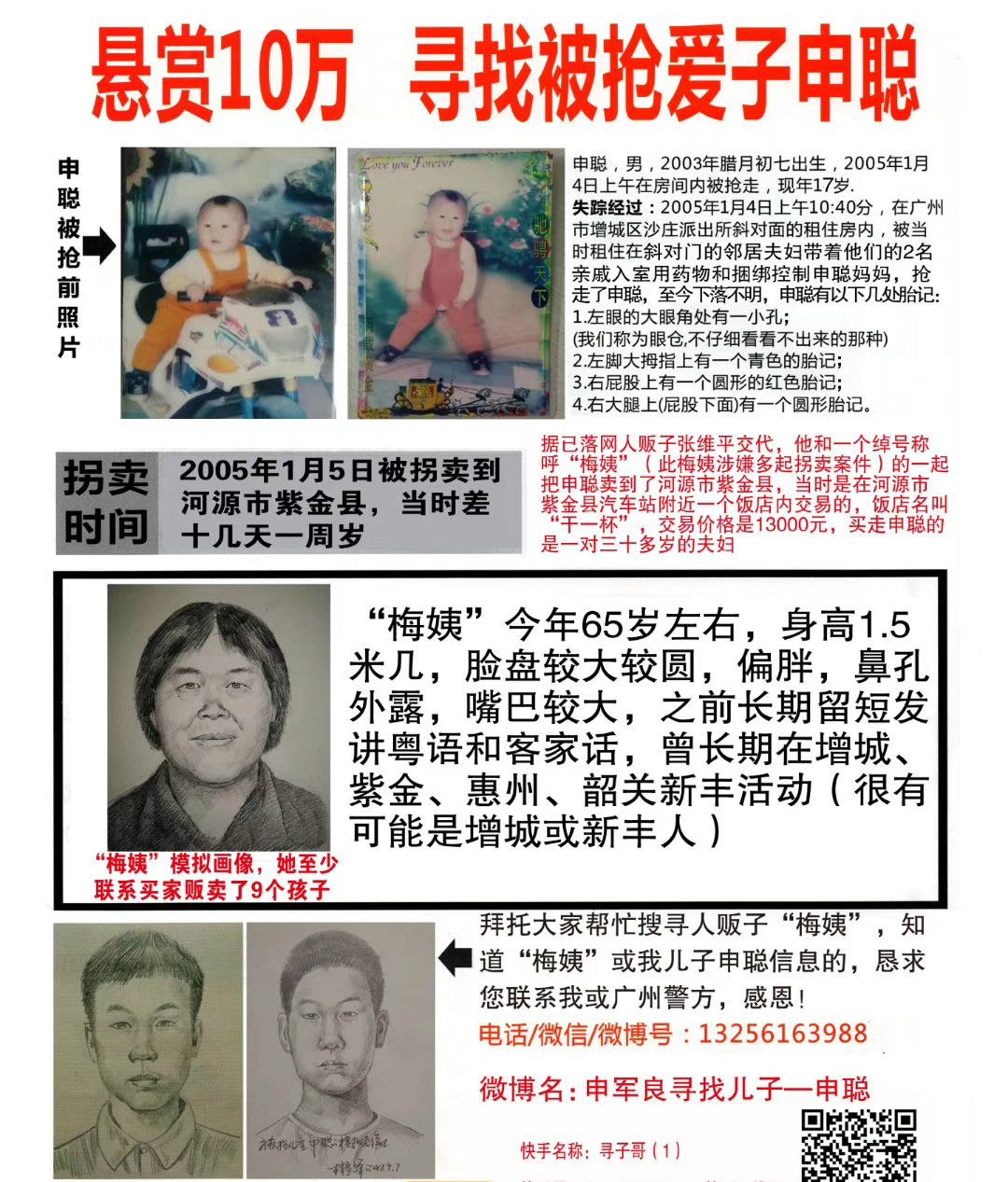 但中间人“梅姨”迄今未被找到。据增城警方此前公布的消息,据已落网的张维平交代,“梅姨”在2003年至2005年期间,长期居住在增城客运站附近的城丰村鸡公山街,平时以做红娘为生,今年65岁左右,身高一米五几,讲粤语和客家话,脸盘较大较圆,单眼皮,嘴巴较大,鼻孔外露,曾长期在增城、惠州、紫金、新丰等地活动,不排除她是新丰人。