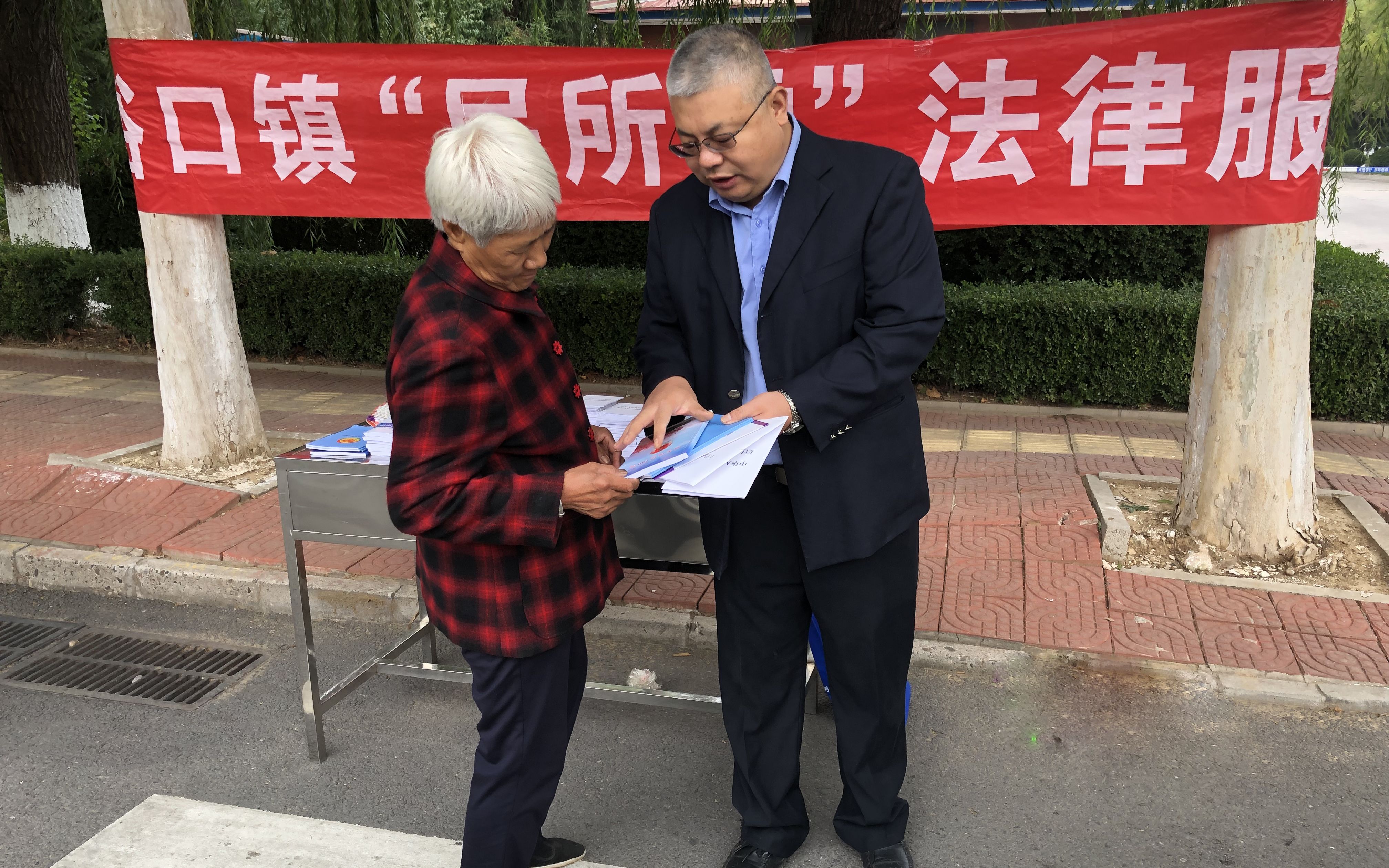 峪口镇在镇说事评理议事普法中心开展“民所需”法律宣传活动,向群众发放普法宣传材料,普及法律常识。平谷峪口镇供图