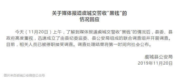 11月20日,砀山、虞城均作出回应,由当地公安局联合县纪委监察委组成调查组,依法严肃处理。其中,河南虞城相关人员已被停职接受调查。