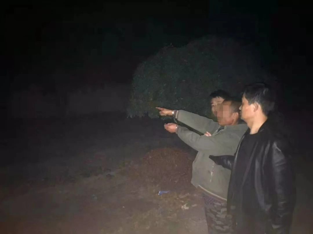 犯罪嫌疑人岳某民指认现场。来源:寿光公安