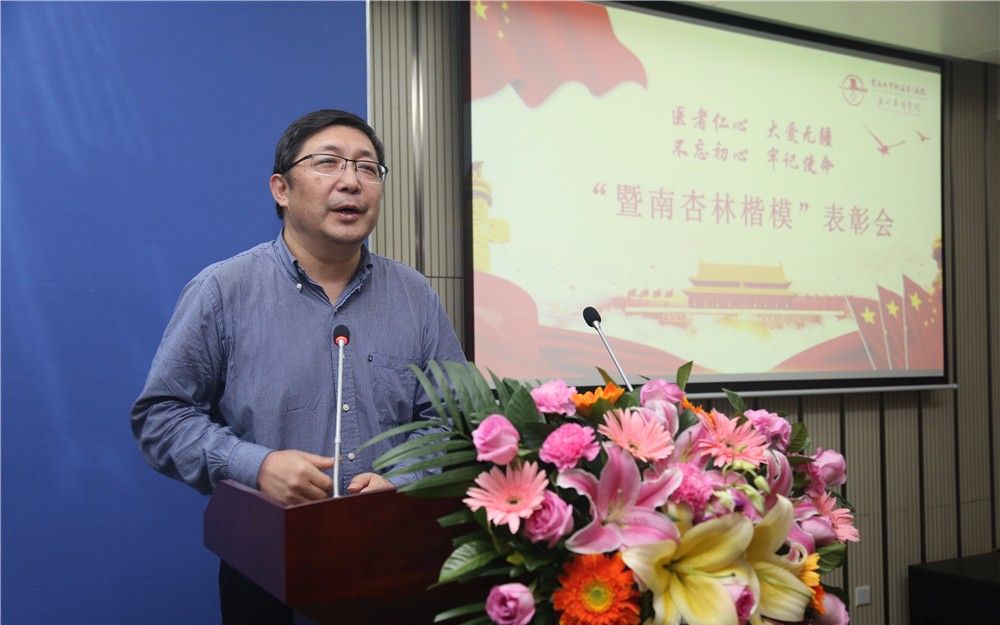 张红医生在表彰会上讲话。来源:暨南大学附属第一医院官网