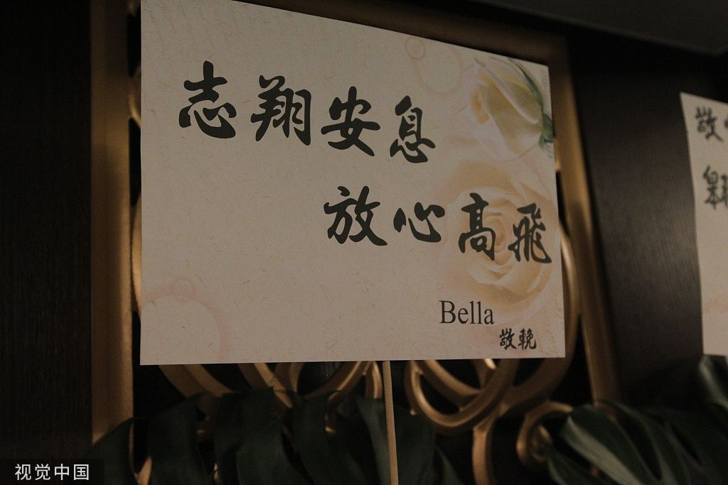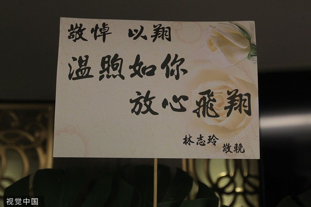 此外,灵堂中还摆放了众多友人送上的花圈,其女友苏湘涵(Bella)送上的花圈上写着“志翔安息,放心高飞”,而林志玲送上的花圈则写有“温煦如你,放心飞翔”。