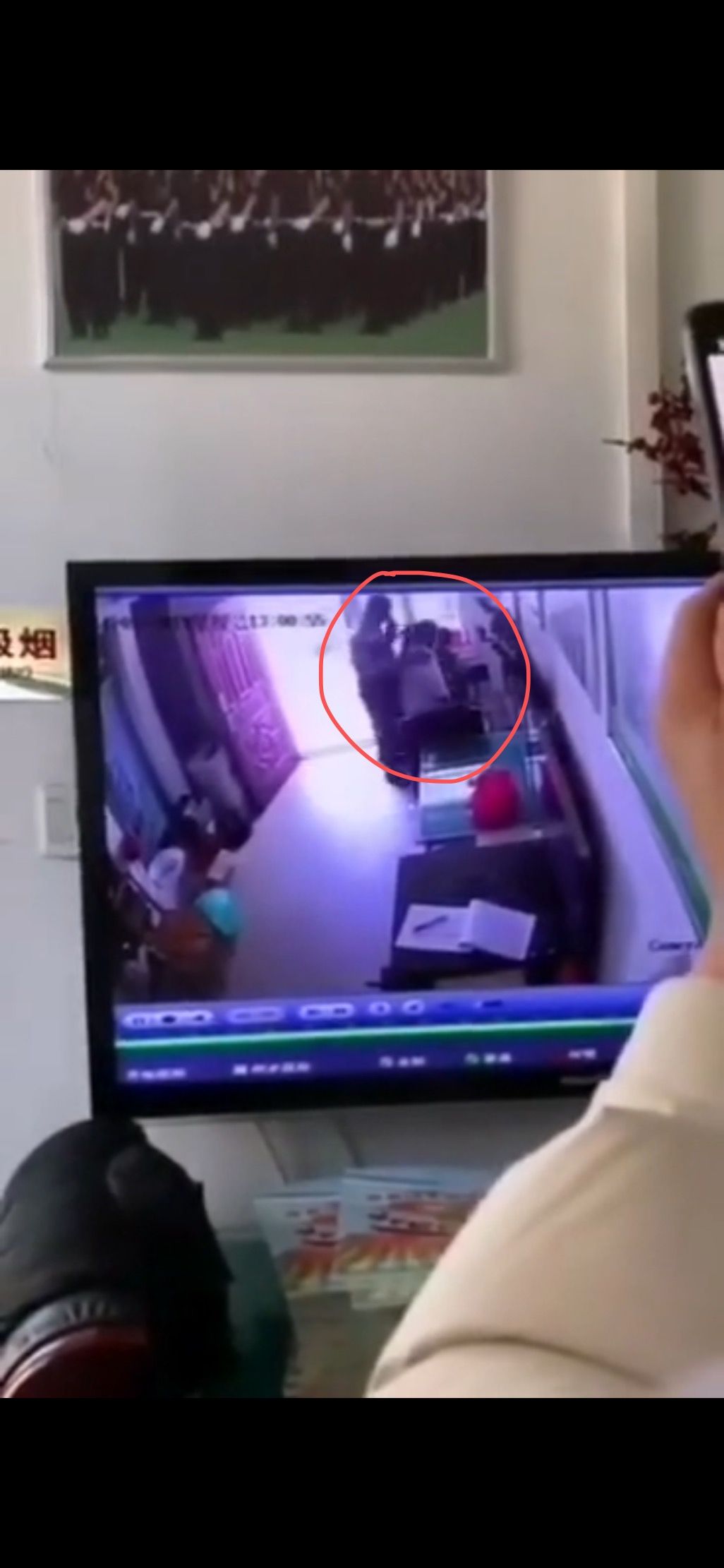 家长调取监控查看事情经过。受访者供图