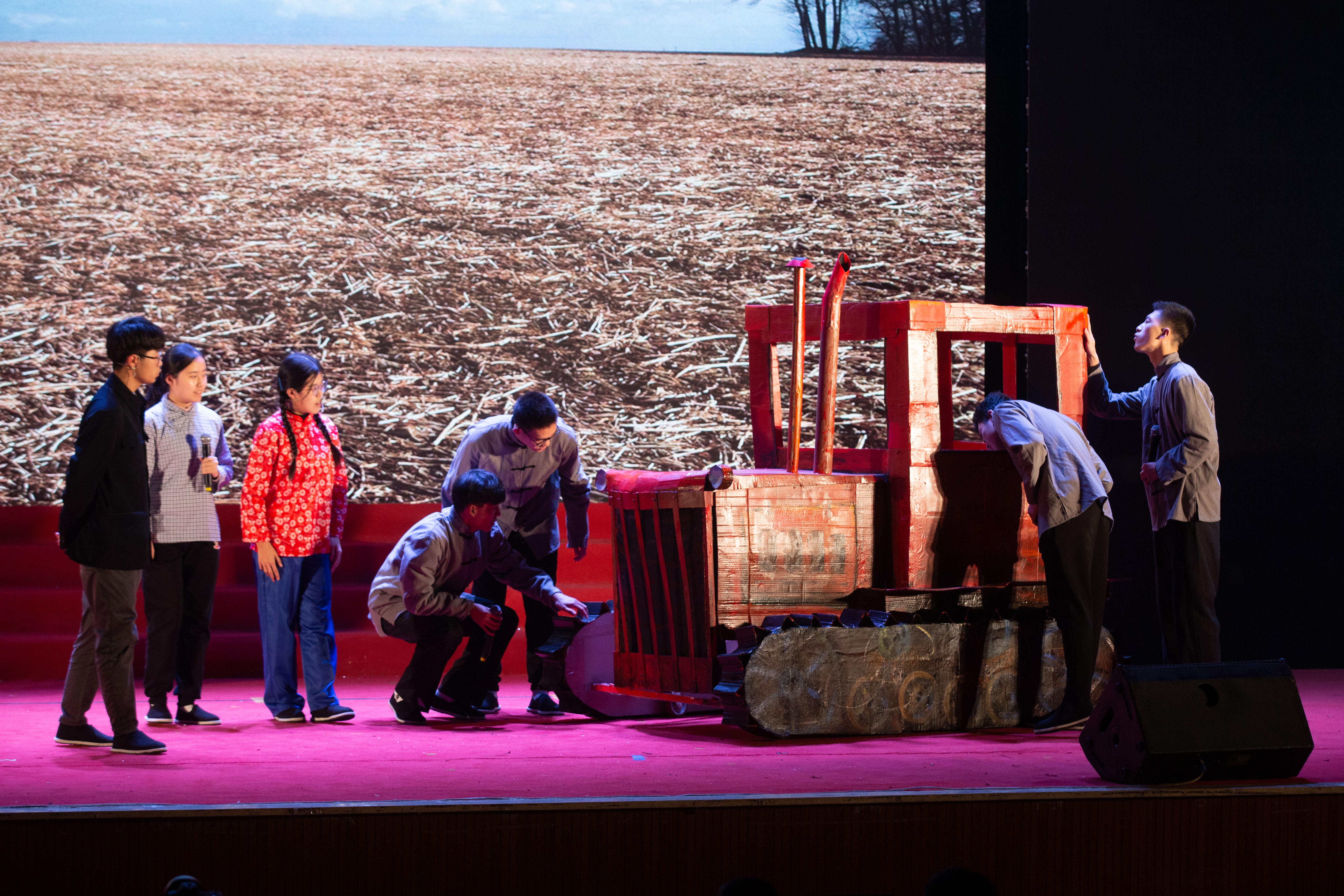中国农业大学工学院表演的情景剧《梁军》,讲述了新中国第一位女拖拉机手的故事。新京报记者 李凯祥 摄
