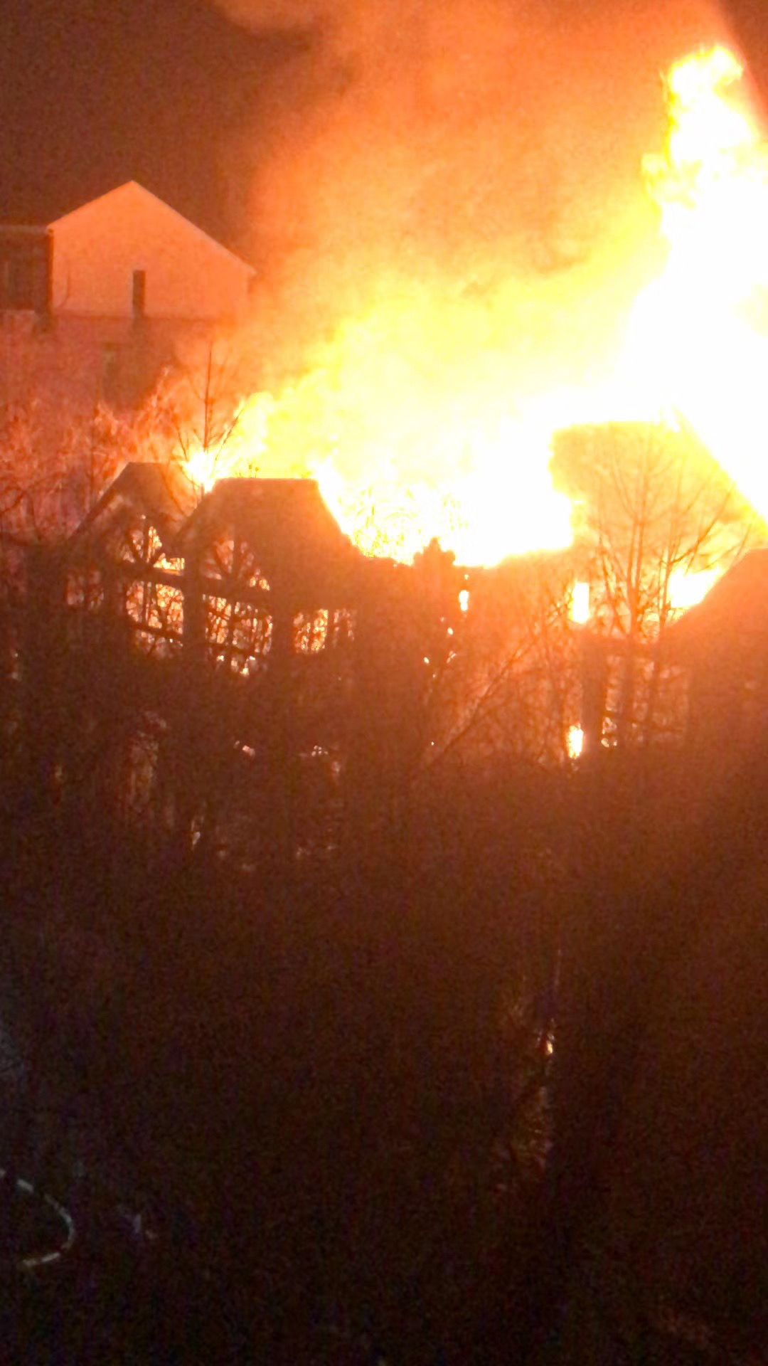12月9日晚,海淀区西山美墅馆内的一栋别墅起火。受访者供图