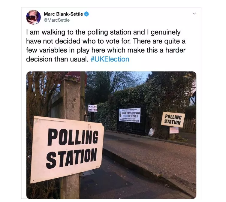 这名英国网友正在前往投票站的路上,但还没想好投给谁。/推特截图