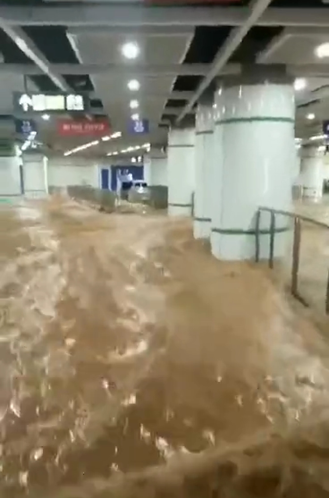 上述市民提供的现场图片显示,有水向凹陷处涌去。地铁站内部水流可没过脚踝。其称,目前该段地铁已经停止运行。