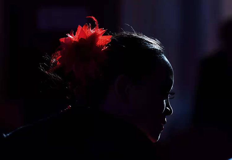 决赛场上,一名参赛选手的红色头饰。