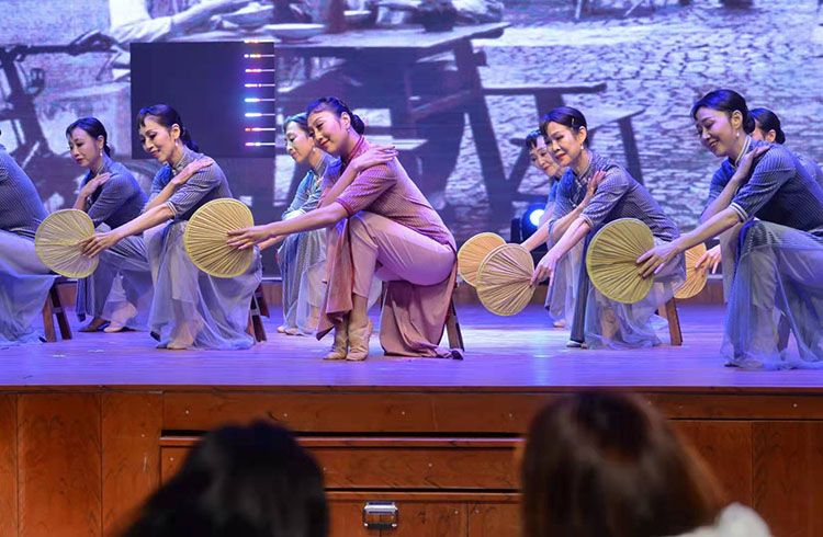 颁奖仪式前,著名舞蹈家陈爱莲展示舞姿。