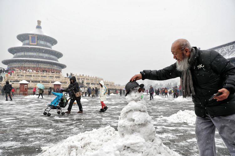 北京人则直接跑出门,亲身感受这次难得的雪景了。