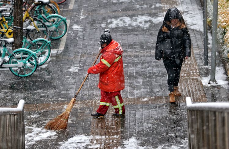 这并不是因为雪太“湿”,而是为了人们通行方便,减轻早高峰的压力。