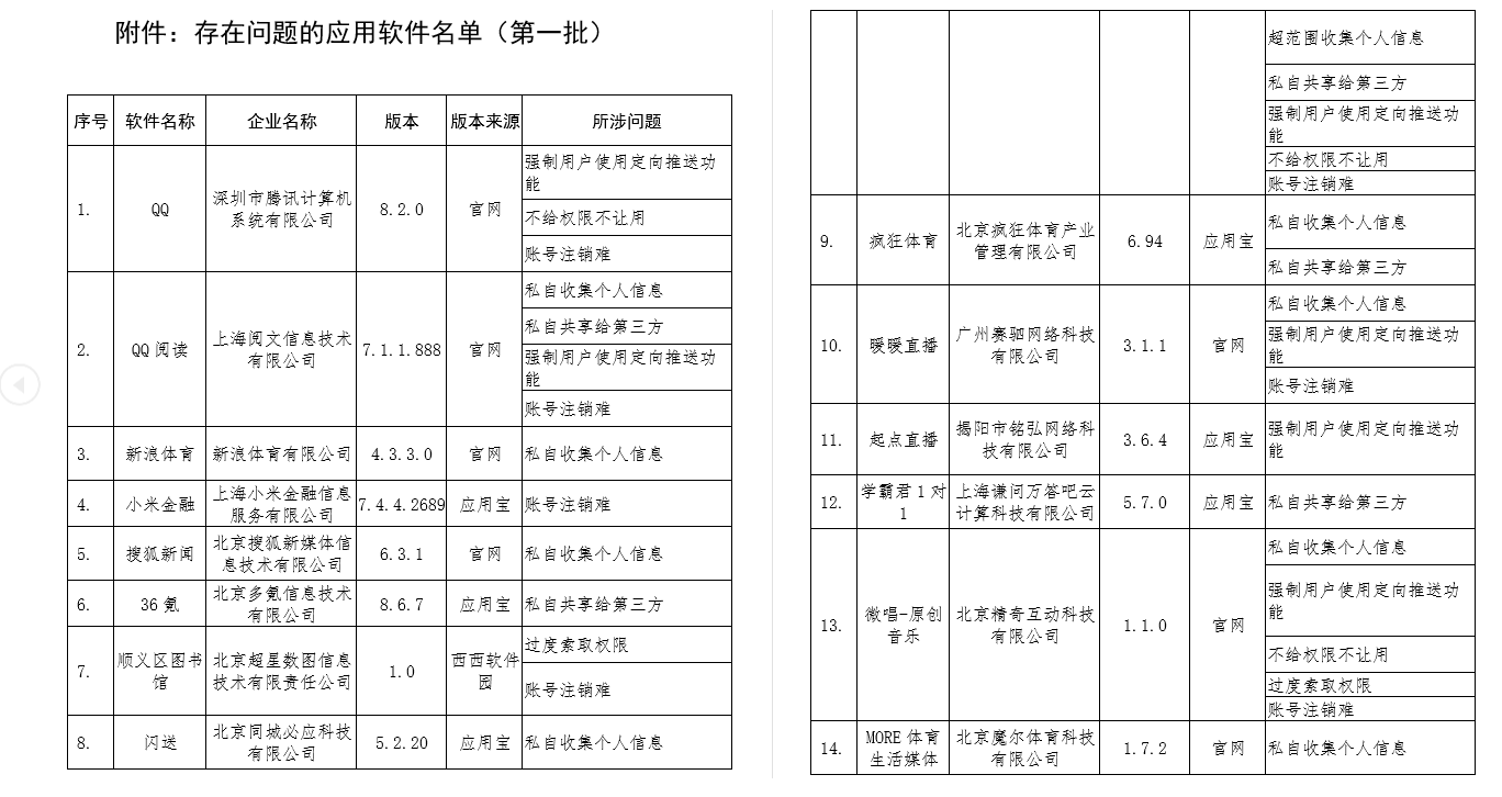 存在问题的应用软件名单: