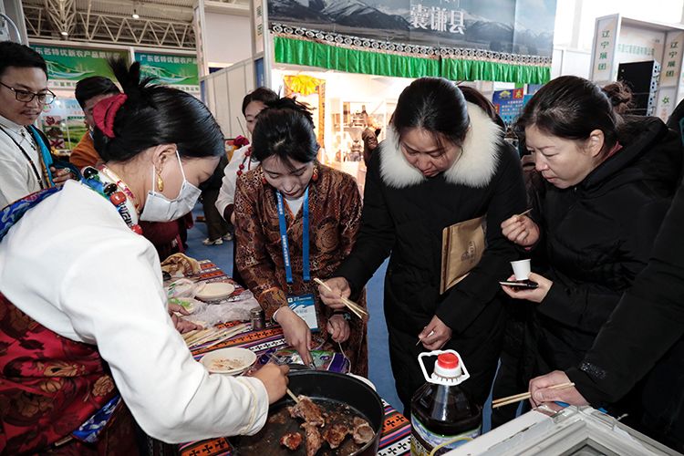 观众试吃牦牛肉。
