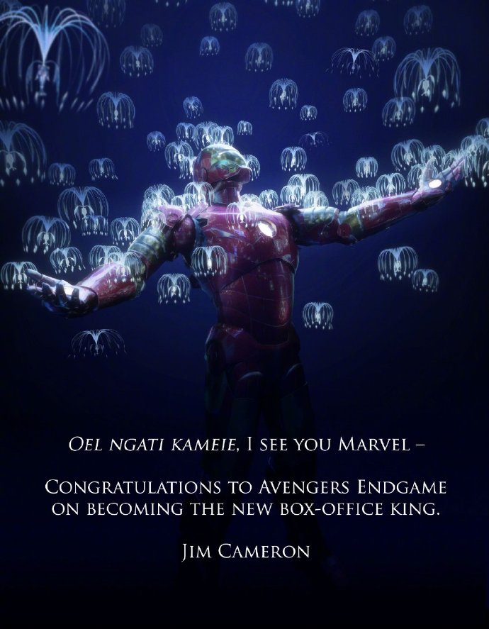今年7月,《复联4》票房超过《阿凡达》时,卡梅隆曾表达了祝贺。他在采访中表示:“我不想在祝贺对方后又让自己听起来酸酸的。不过我开车的时候脑子里做了下算数,《复联4》的票房比《阿凡达》只多出0.25%,我想会计管这个叫做‘舍入误差’。”