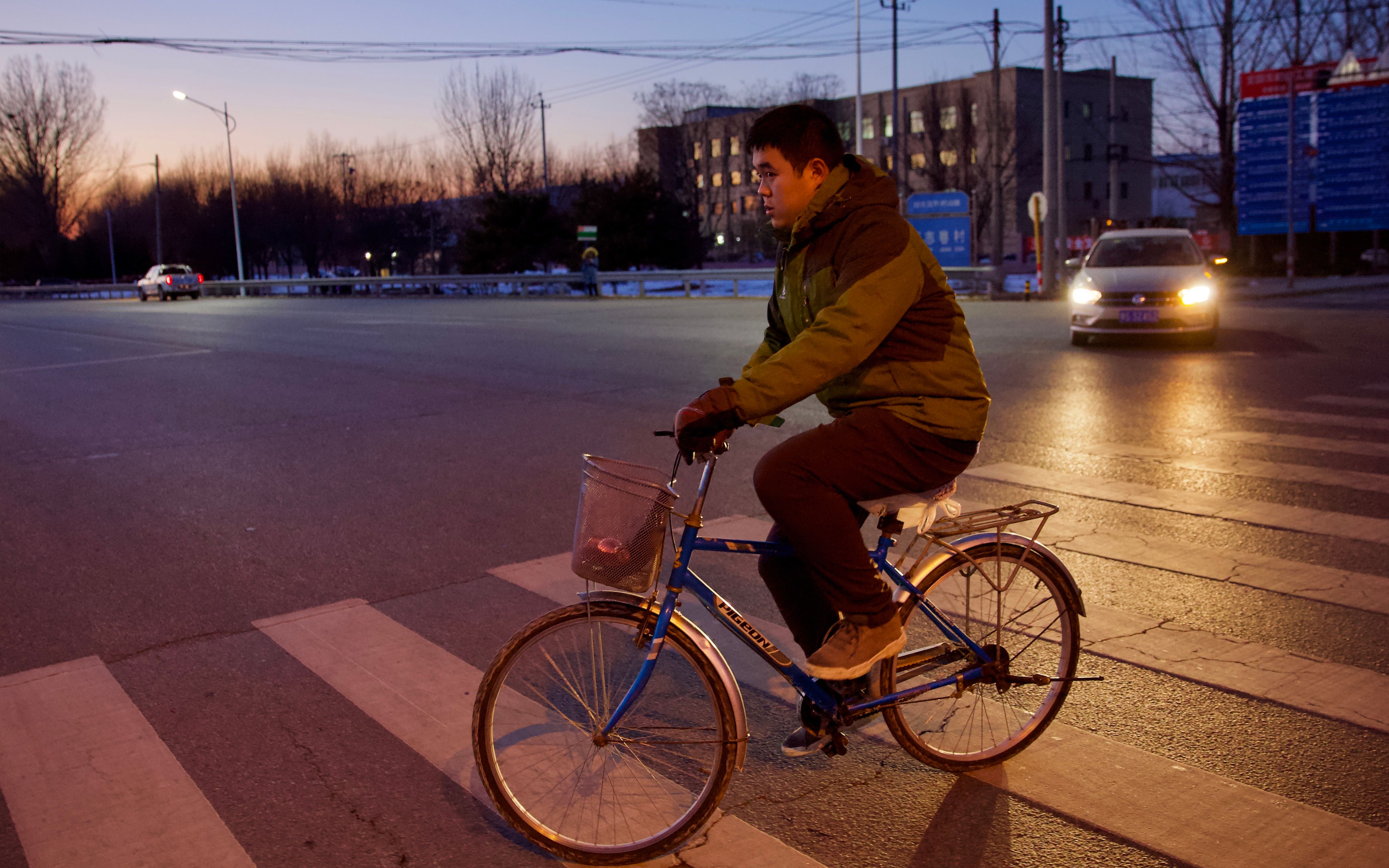 12月19日,宇航下班后自己骑自行车回家。 新京报记者 郑新洽 摄