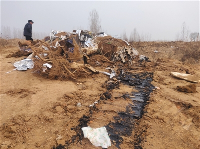 此前,记者通过连日暗访调查,发现山东郓城有人以复垦项目回填的名义,接收各类工业废料、生活垃圾等废弃物,在夜幕掩盖下将废弃物埋入地下,再在表面盖上一层土,掩人耳目。