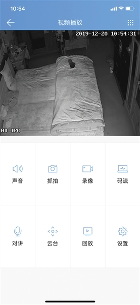 输入密码后,一经联网,画面即弹出。这个账号属于一对夫妻,姓名、地址不详,但他们的一举一动都暴露在他人的手机上。通过视频,可以看到这对夫妻家中卧室、门口走廊的画面。另外,摄像头有夜视功能,晚上可以清晰看到床上的人睡觉翻身的动作。