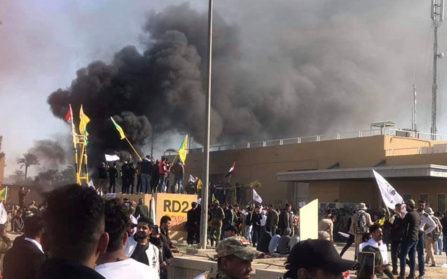 美国驻伊拉克大使馆门前聚集了众多示威者。推特截图