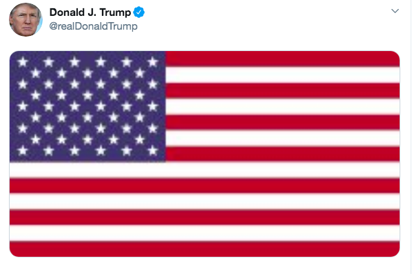 美方证实对伊朗军官的袭击之后,正在海湖庄园度假的特朗普更新推特,只发了一面美国国旗,没有任何文字说明。