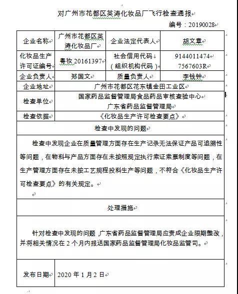 国家药监局飞行检查 7家化妆品生产企业被限期整改