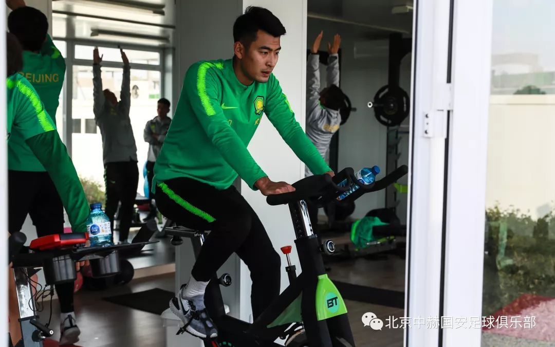 经过了近24小时的长途旅程后,北京国安队抵达驻地酒店时已是当地时间1月3日深夜,休息一夜后,球队就在中方教练陶伟和程俊的带领下进行了首堂训练课。为了让队员们缓解疲劳,这堂训练课时间仅为1小时,以单车、跑步等有氧运动为主。
