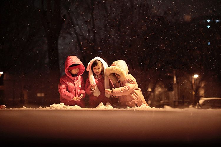新京报快讯 1月5日晚,北京城飘起雪花,很快大地被盖上一层白雪。欣喜的市民来到户外,拍照、堆雪人、赏夜雪,邂逅这场2020年的初雪。