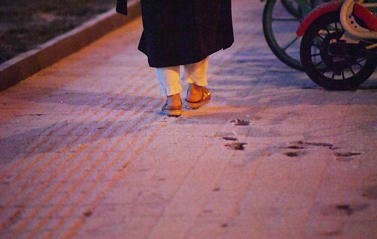 朝阳北路,一位市民穿着拖鞋跑出来赏雪。