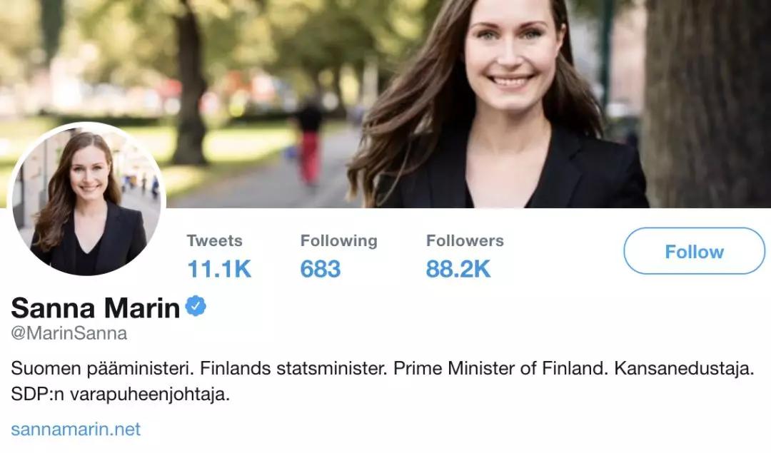 桑娜·马林的推特主页。推特截图