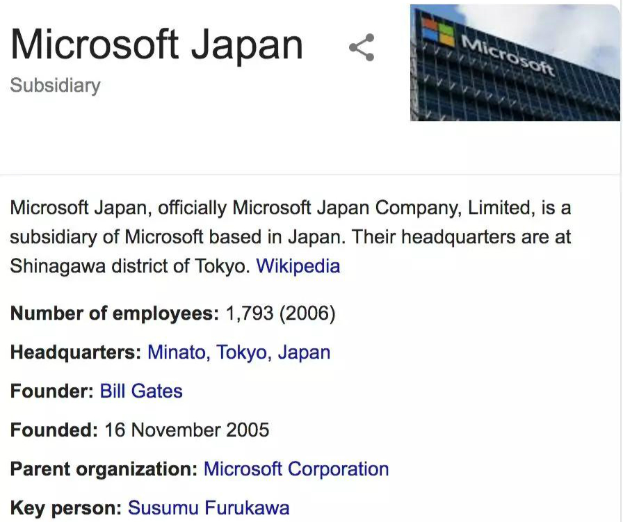 微软公司日本分部简介。Google截图