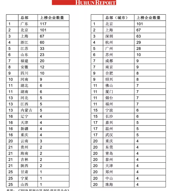 2019胡润中国500强民企:北京有101家企业上榜
