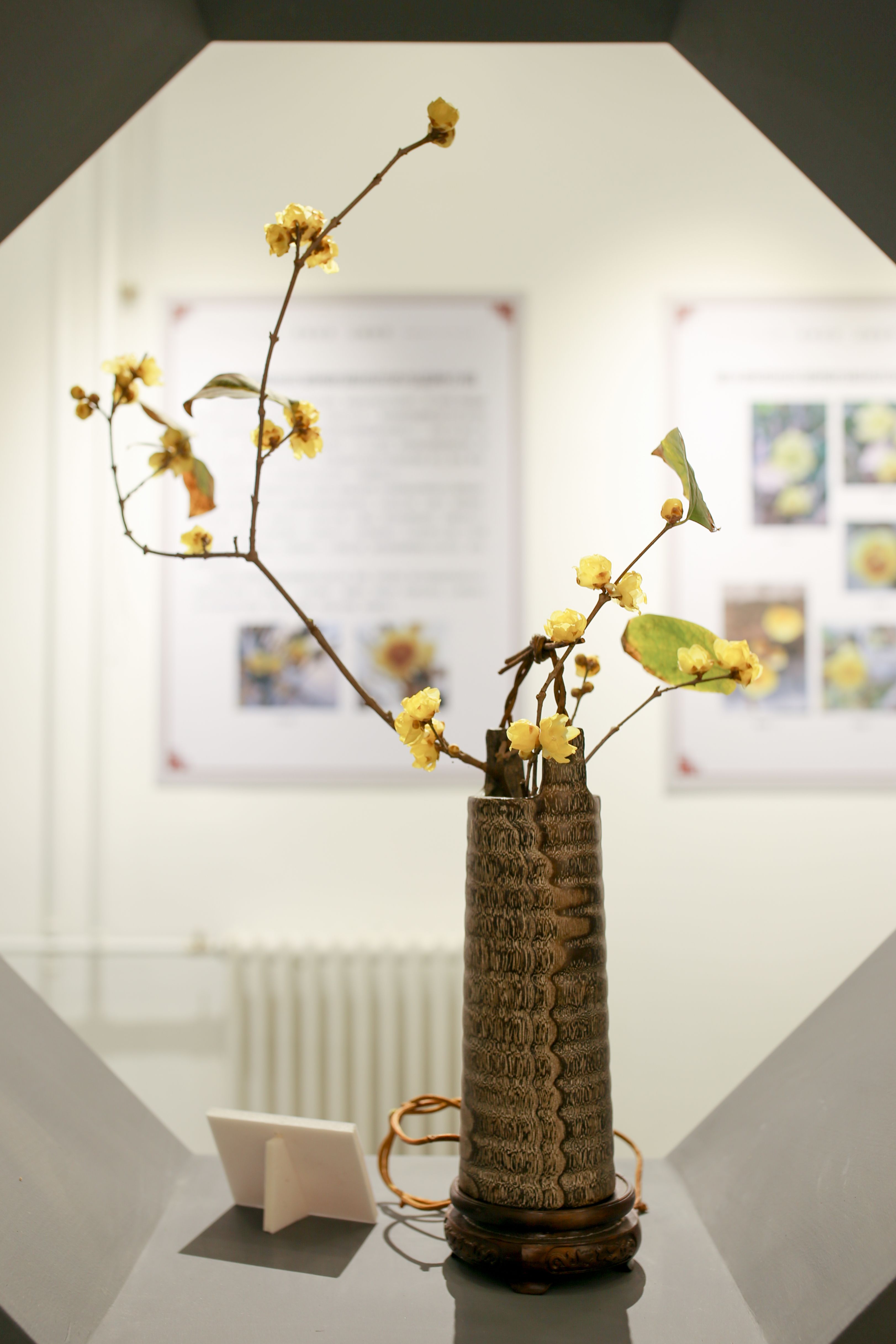 科普展示中心的蜡梅插花。 新京报记者 余华尊 摄