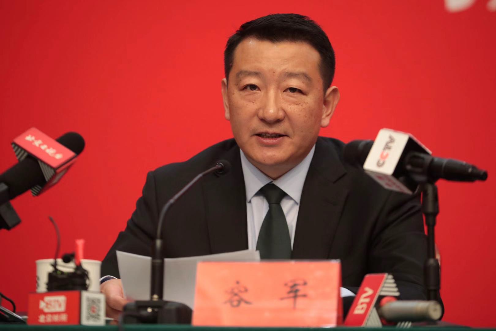 1月15日,北京市第十五届人民代表大会新闻发布会,北京市交通委副主任容军介绍情况。摄影/新京报记者 王嘉宁