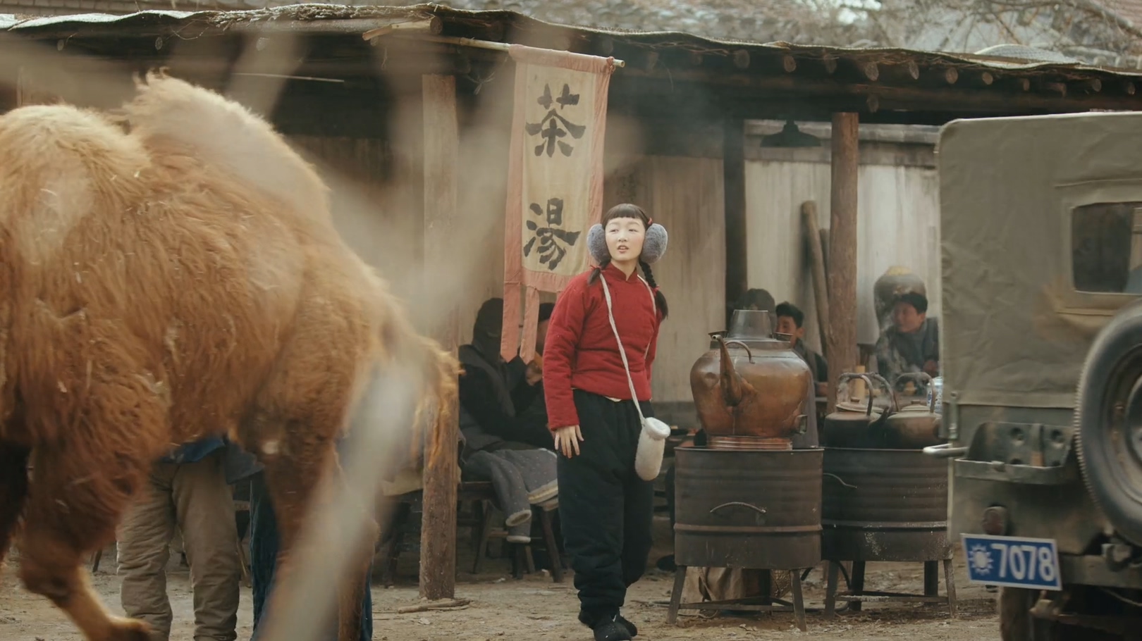 剧中的骆驼走过北京的街道。