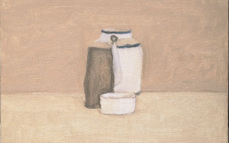 莫兰迪的静物画,神秘更增,相应地,给人的惊异也愈深。因为他这里的“主题”不再是自然、风景、花朵,而是严限在那么几个近乎微不足道的日常之物上。