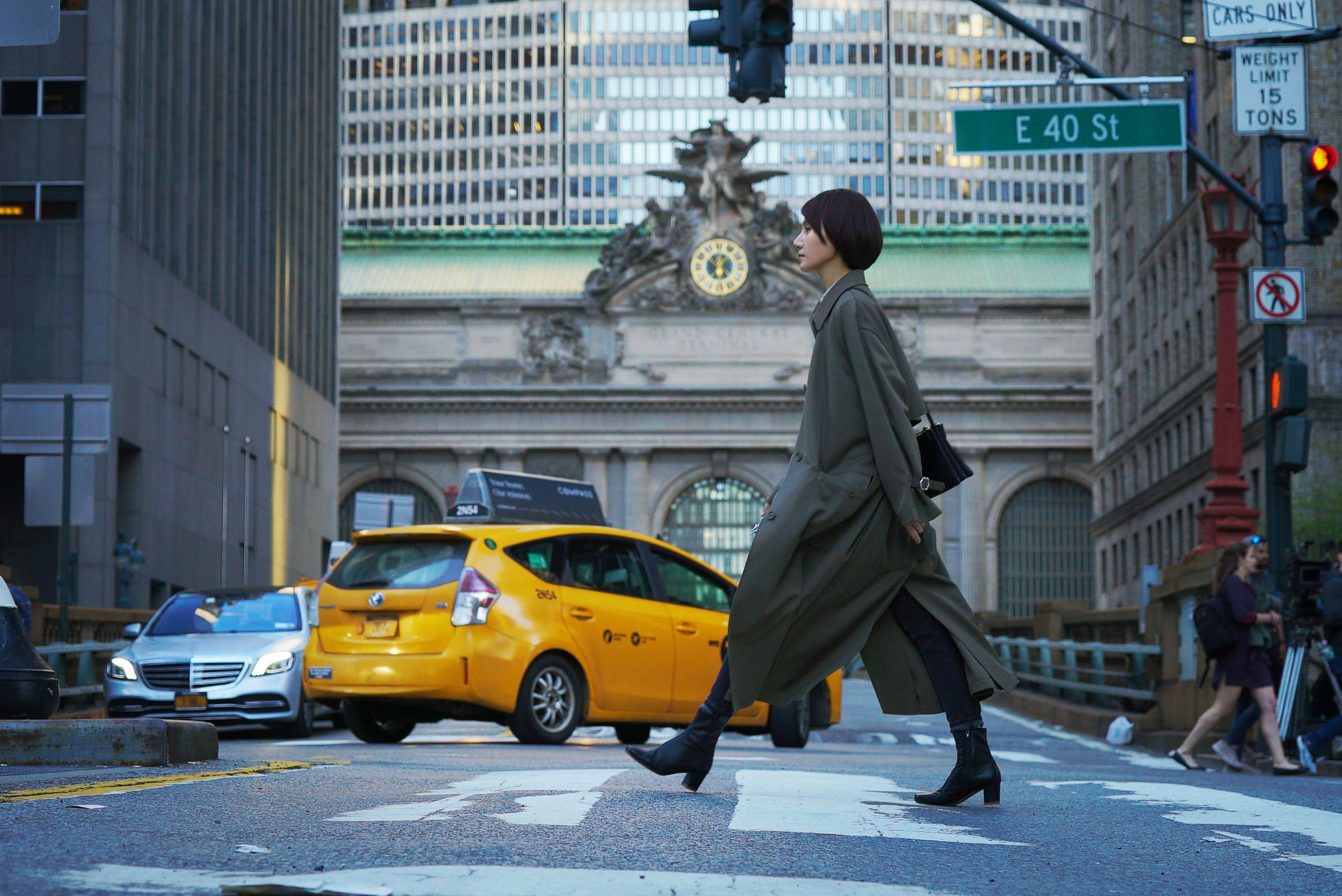 袁泉在纽约街头拍摄。