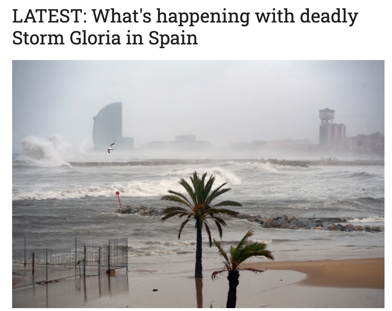 新京报快讯(记者 谢莲)据《卫报》报道,近日,暴风雨雪“格洛丽亚”(Gloria)袭击西班牙东部地区,造成强风、暴雨、降雪等极端天气。截至22日,“格洛丽亚”暴风雨雪已致至少9人死亡、4人失踪,被认为是西班牙30年来最强的暴风雨雪。