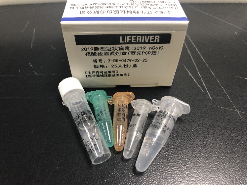 一个完整的核酸检测试剂盒包含5个试剂瓶,可供25人份检测。受访者供图