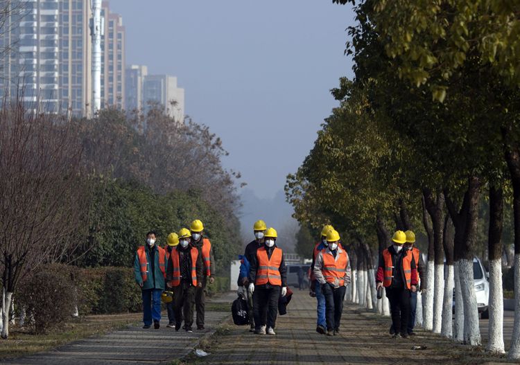 1月30日9时许,工人换班,离开工地走向宿舍。