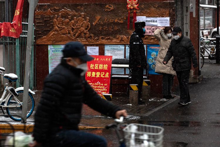 小西天文慧园路,居民从小区内出来。